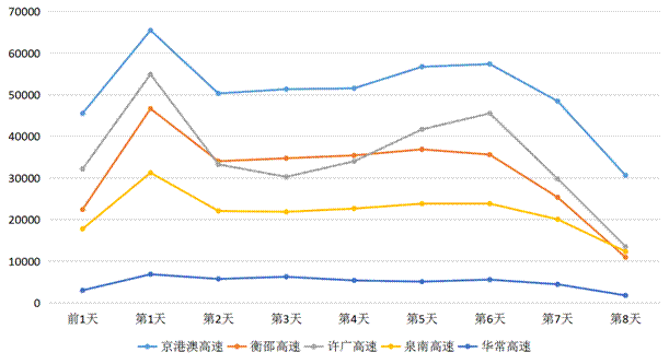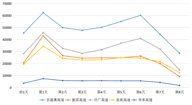 ▲2018年国庆假期衡阳高速公路交通流量折线图