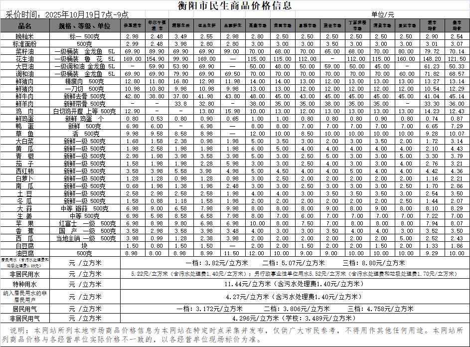 【物价】 2025-10-19衡阳市民生价格信息