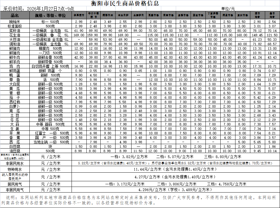 【物价】 2026-1-27衡阳市民生价格信息