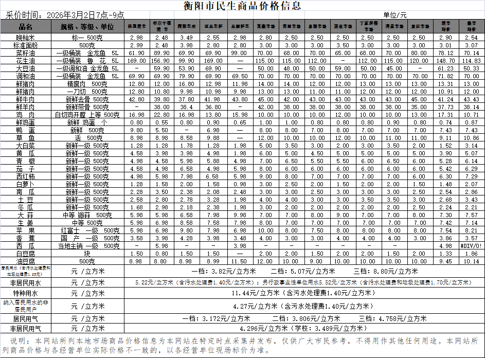 【物价】 2026-3-2衡阳市民生价格信息