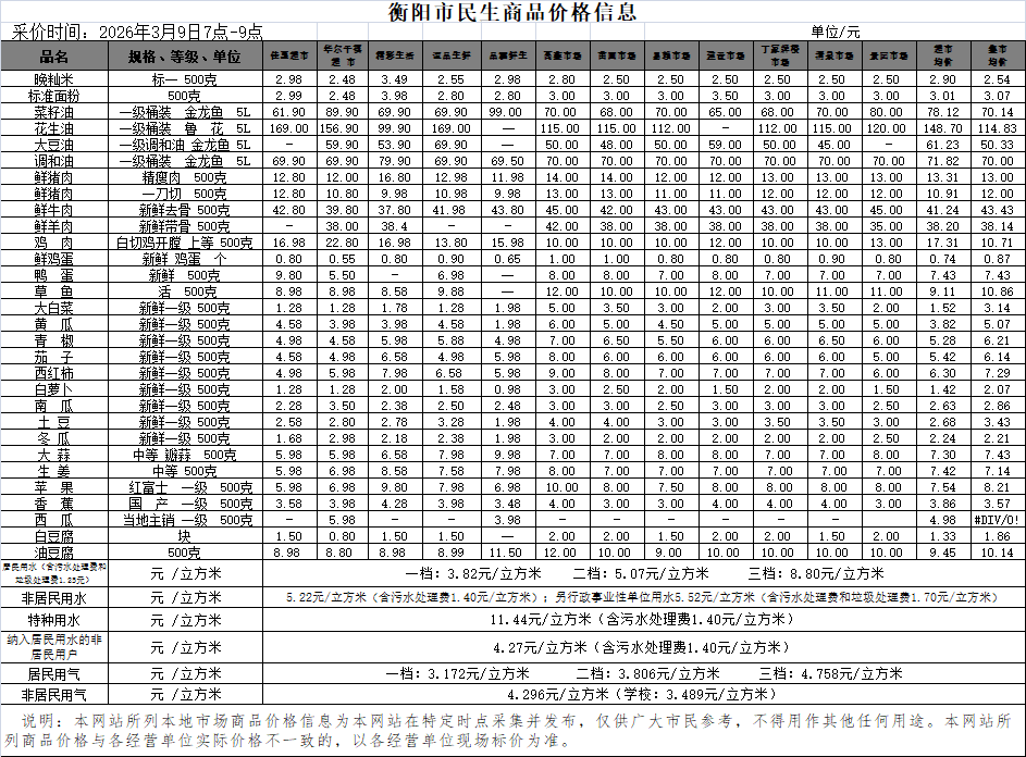 【物价】 2026-3-9衡阳市民生价格信息