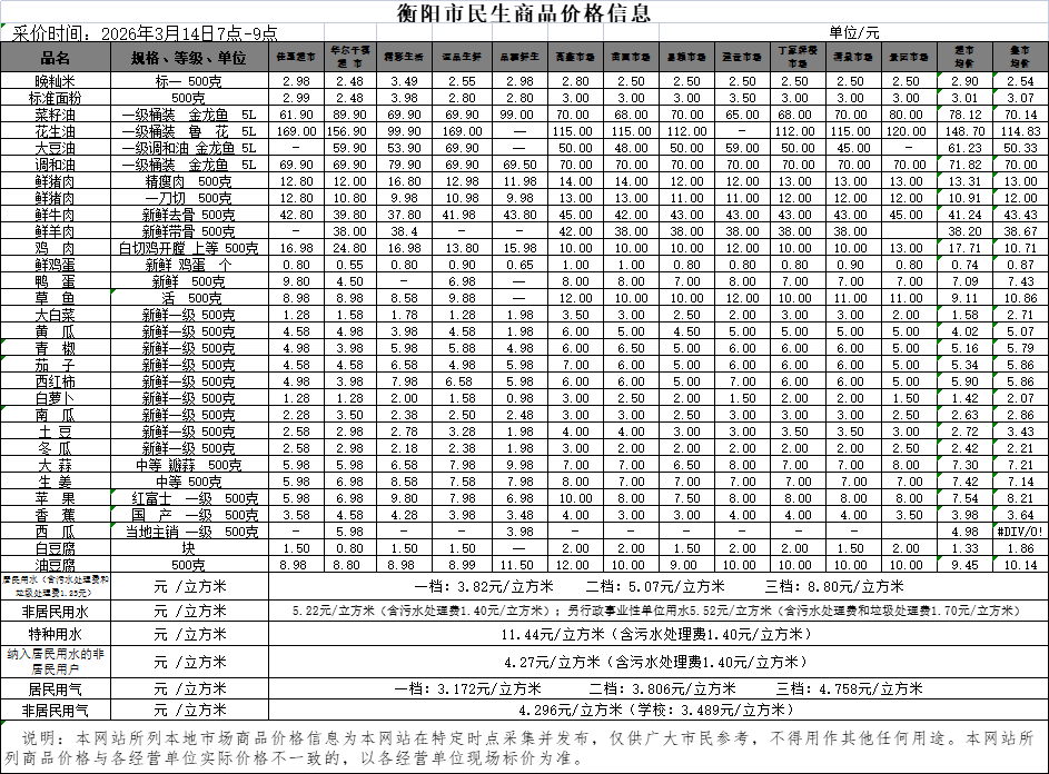 【物价】 2026-3-14衡阳市民生价格信息
