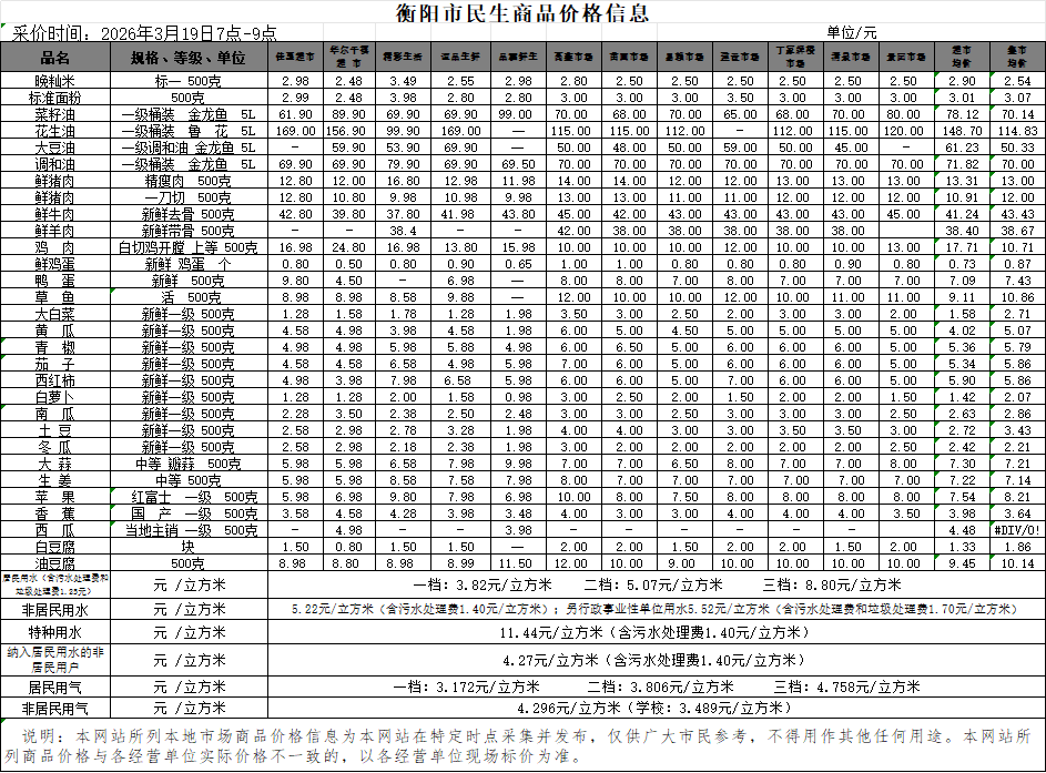【物价】 2026-3-19衡阳市民生价格信息