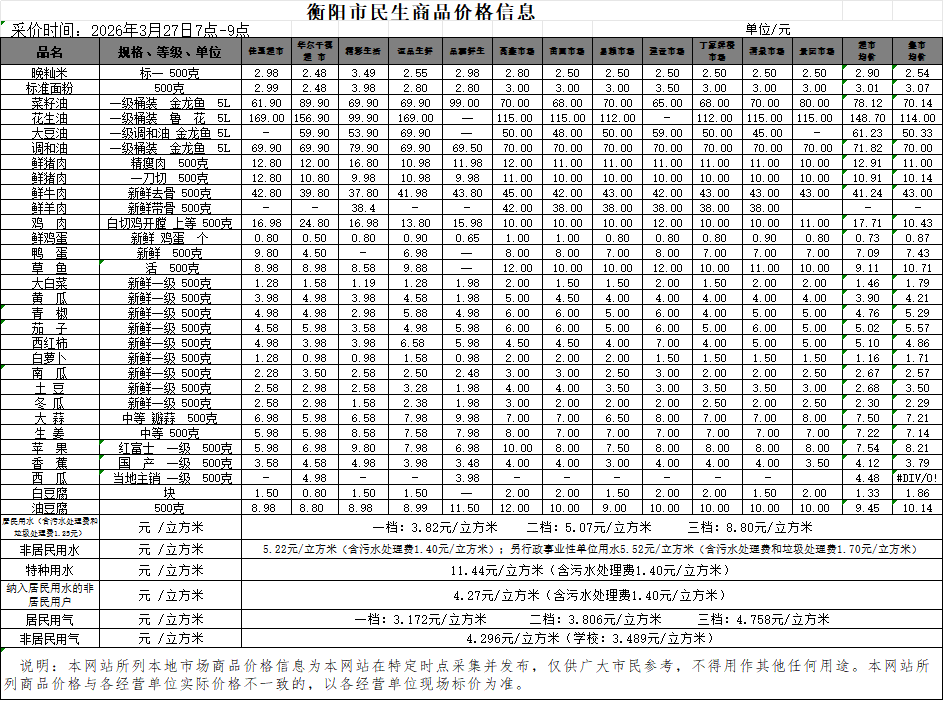 【物价】 2026-3-27衡阳市民生价格信息