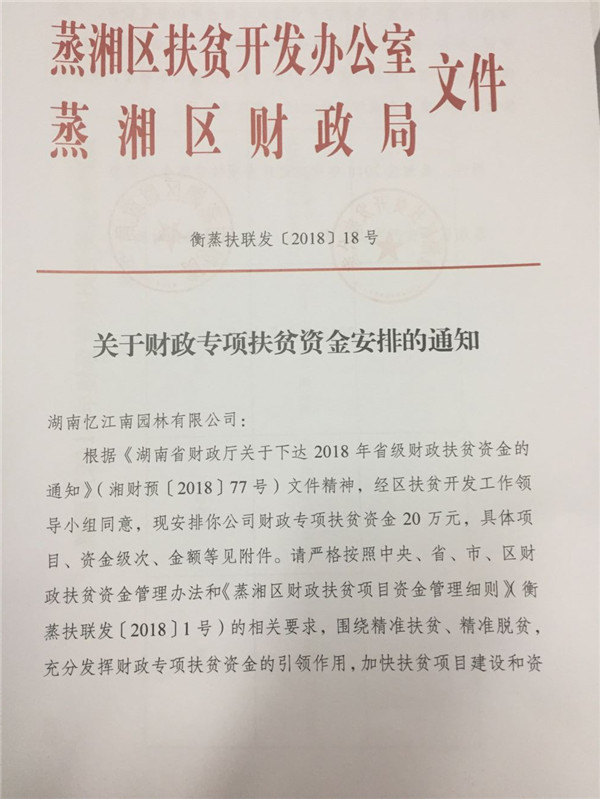 关于财政专项扶贫资金安排的通知(湖南忆江南园林有限公司)