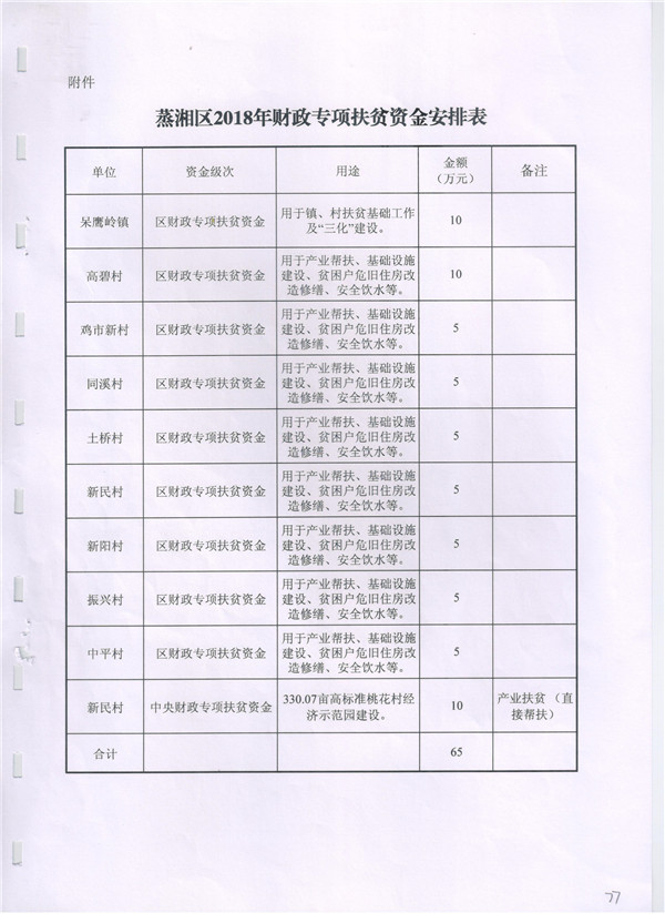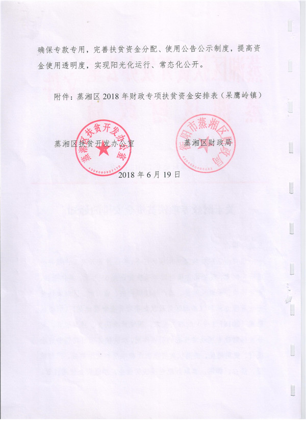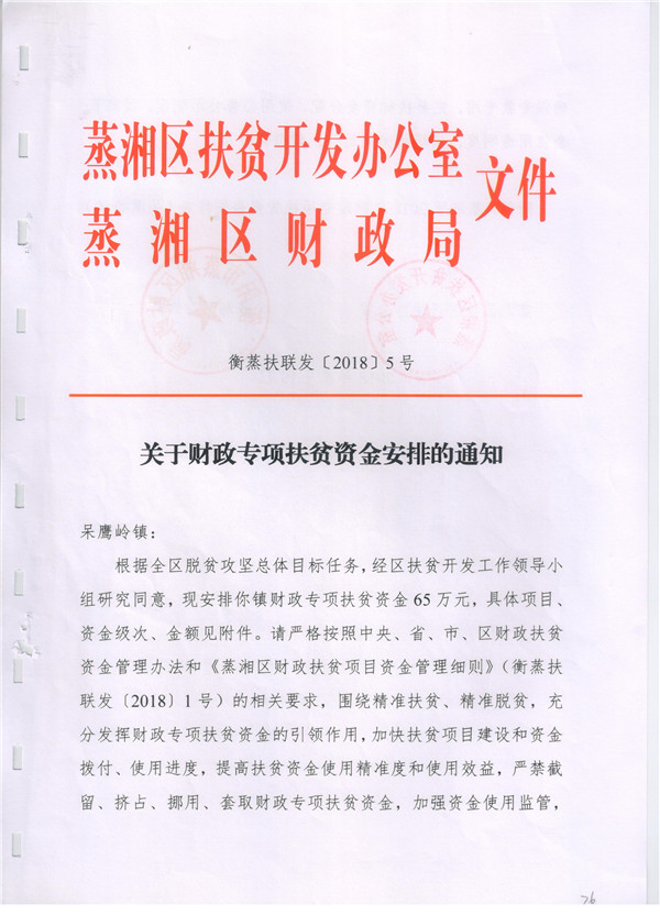 关于财政专项扶贫资金安排的通知(呆鹰岭)