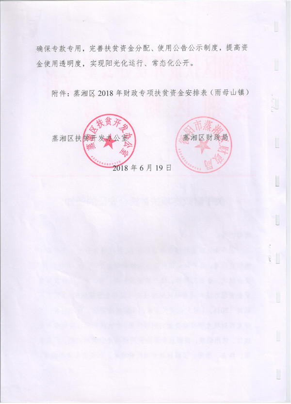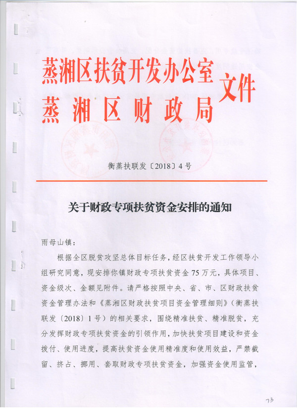 关于财政专项扶贫资金安排的通知(雨母山镇)