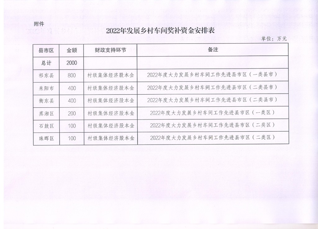 2022年发展乡村车间奖补资金的通知