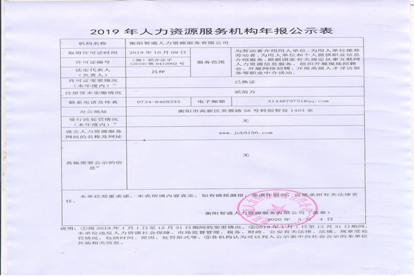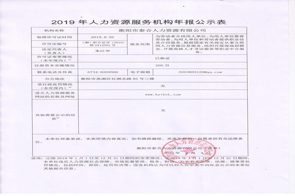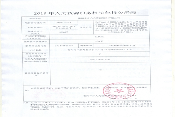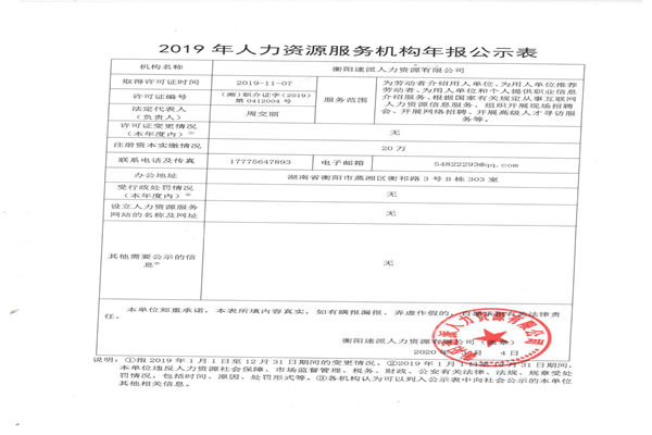 根据人力资源和社会保障部人力资源流动管理司《关于做好2019年人力资源市场统计年报工作的通知》及有关会议精神,现将2019年衡阳市蒸湘区人力资源服务机构年度报告相关情况进行集中公示,接受社会各界监督。