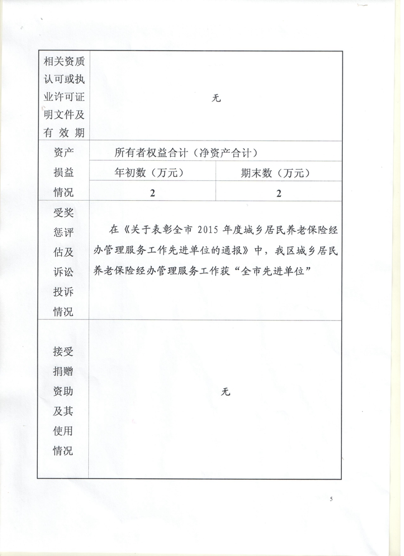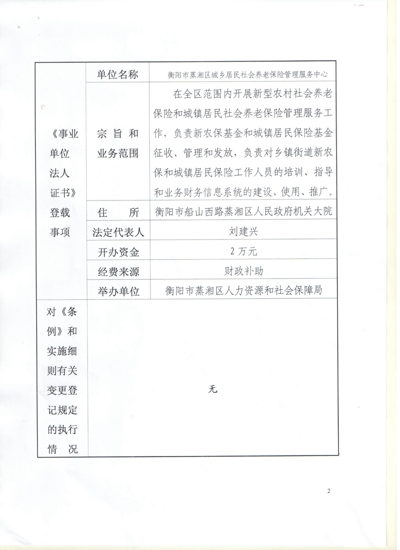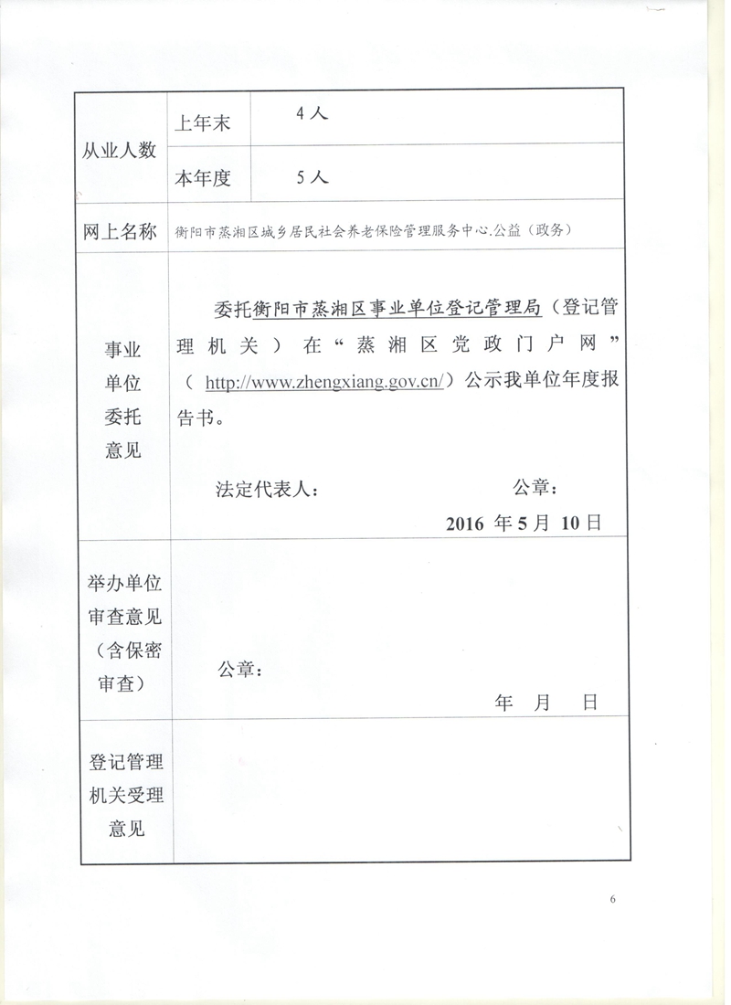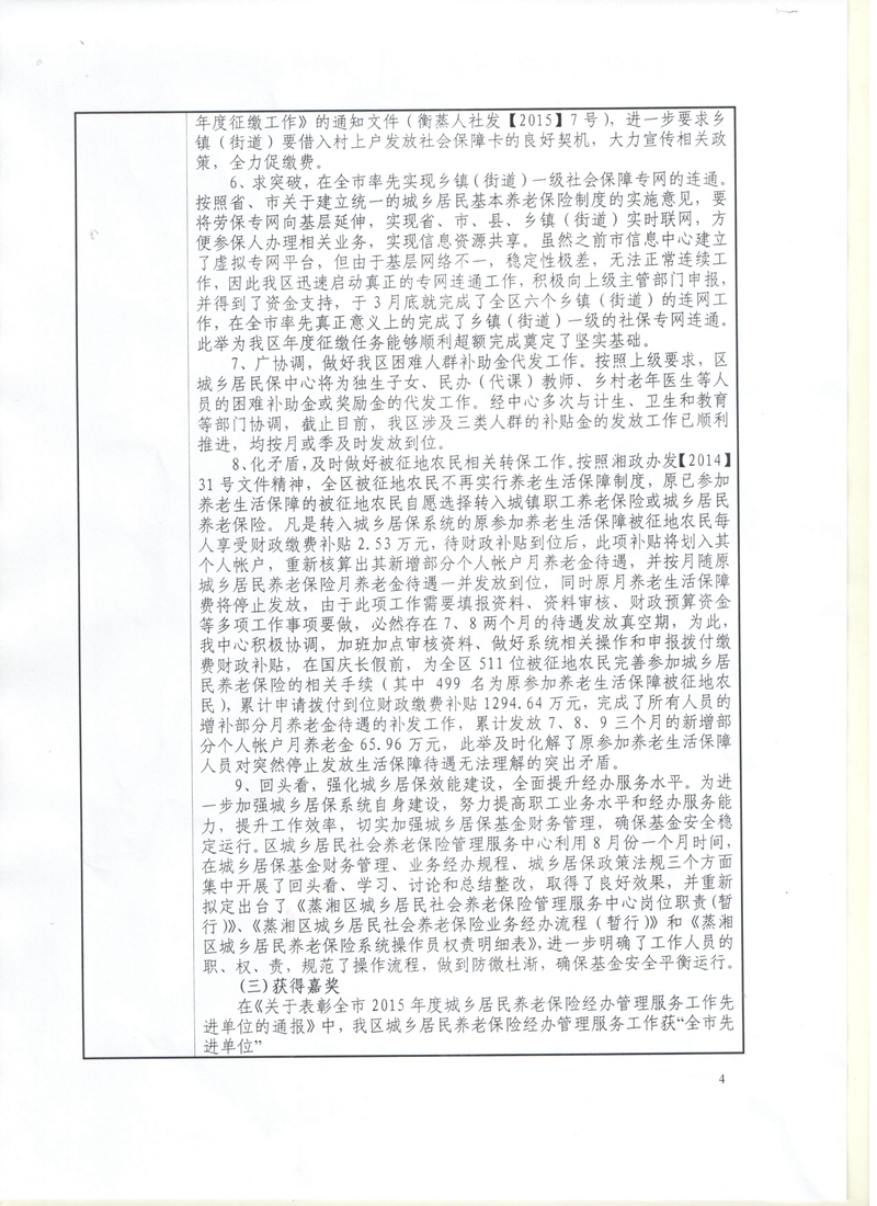 蒸湘区人社局城乡居民社会养老保险管理服务中心2015年度事业单位法人年度报告书