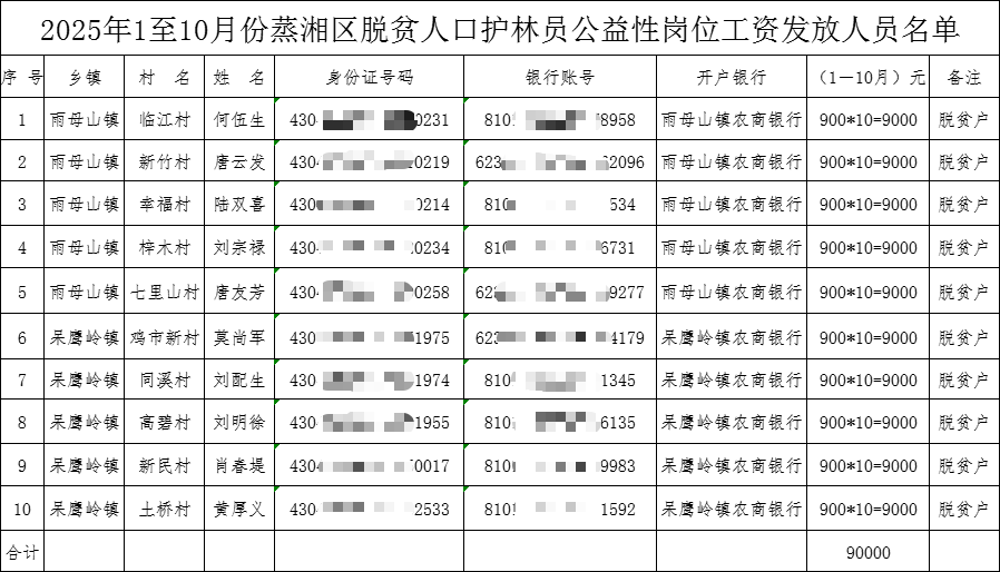 关于2025年蒸湘区公益性岗位1-10月份发放名单的公示