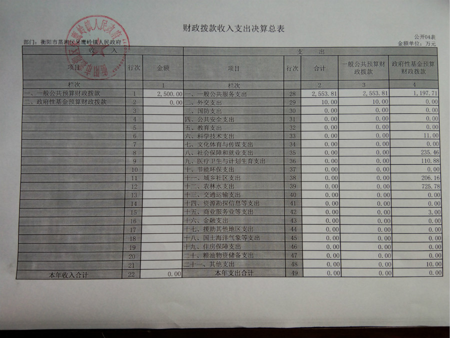 2017年度部门决算报表