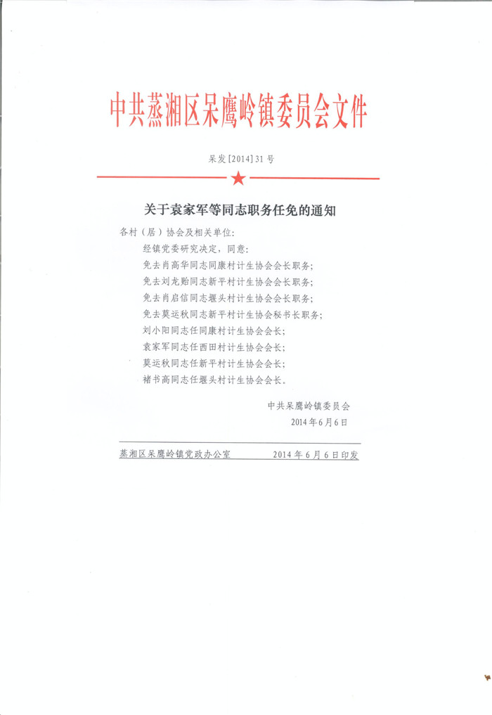 呆发【2014】31号 关于袁家军等同志职务任免的通知