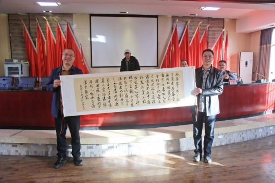 交流中,蒸湘文学学会的会员们带来了特别的“文化礼物”:副会长欧阳立英代表学会赠送的书籍整齐码放,邓准德、陆魁伟等会员现场展示的书法作品墨韵飘香,这是呼应着街巷里的生活本真,也传递着文艺与基层的深厚联结。“只有走进街头巷尾,才能写出有温度的文字。”学会会长邓准德的话,道出了在场文艺工作者的共鸣。
