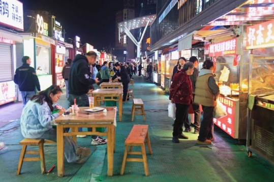 南华里夜经济示范街烟火气十足。它地处蒸湘中心,串联三大商圈,金钟大雁城、融冠乐街、弘阳广场入选省级夜间消费聚集示范区。依托“蒸湘畅晚”品牌,这里培育多元业态,200多个摊位客流高峰达5000人。今年“五一”,金钟大雁城客流破40万,弘阳广场单日客流超10万,消费活力凸显。