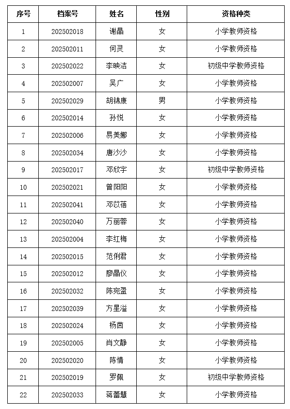 蒸湘区2025年第二批次教师资格认定拟通过人员名单