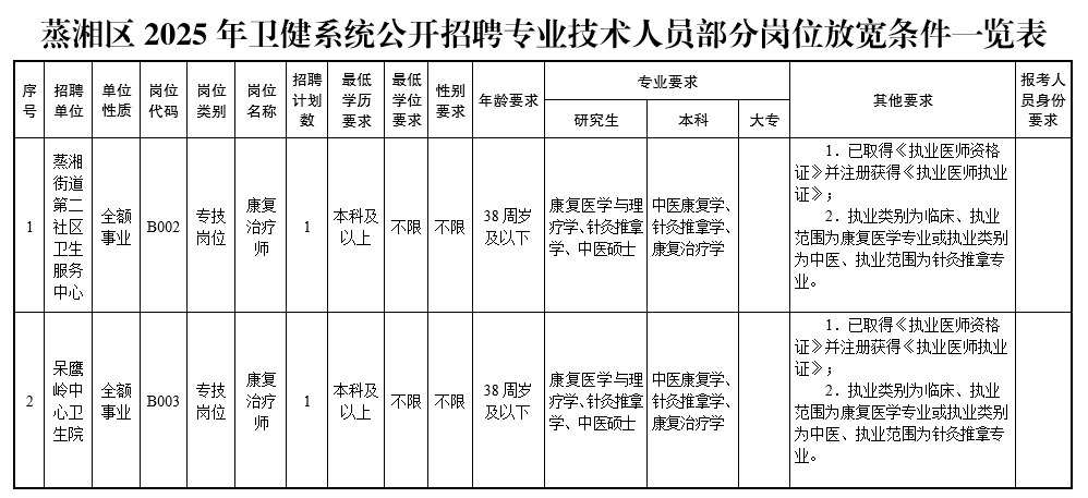附件:蒸湘区2025年卫健系统公开招聘专业技术人员部分岗位放宽条件一览表