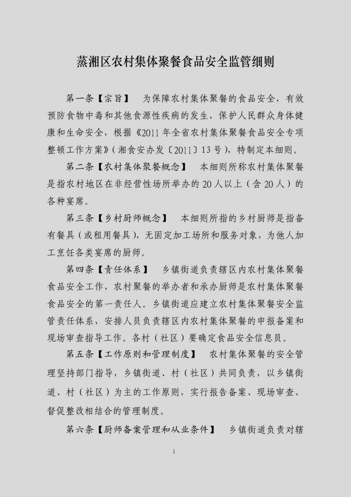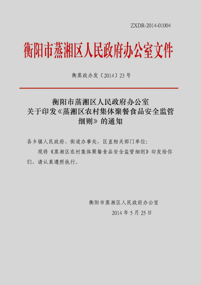 ZXDR-2014-01004 关于印发《蒸湘区农村集体聚餐食品安全监管细则》的通知