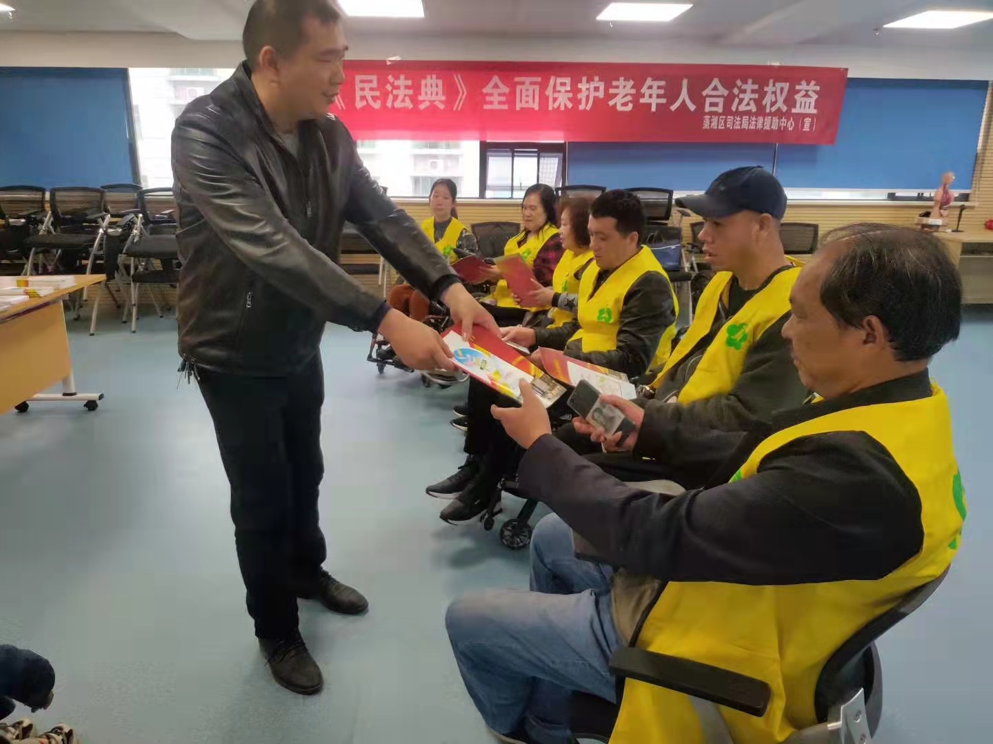 近日,蒸湘区司法局法律援助中心与湖南君杰律师事务所青年援助律师来到衡阳静安医院康复中心为残疾人开展"民法典"主题法律讲座活动,让"民法典"走到群众身边,走进群众心里。