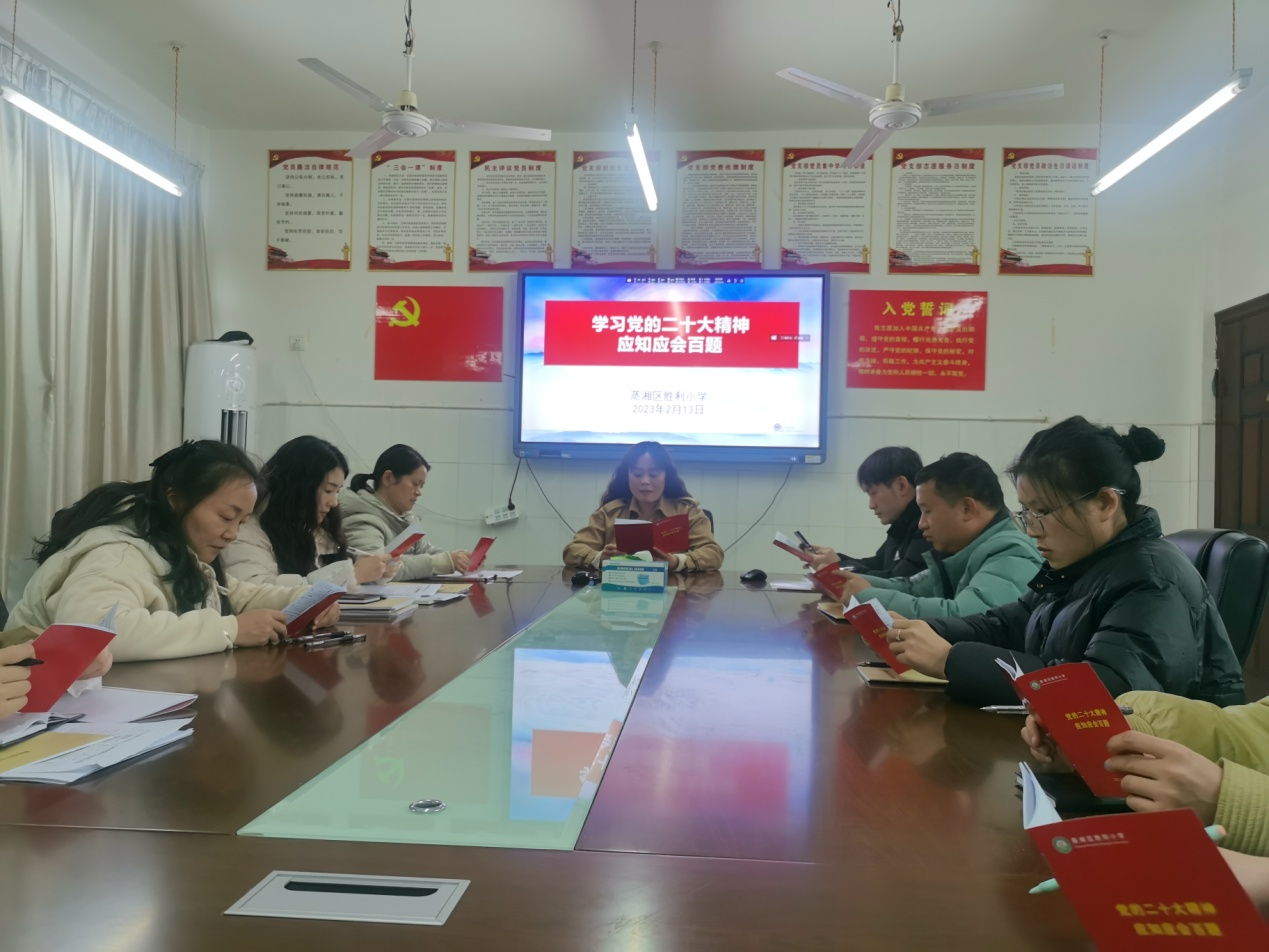 党支部负责人组织全体教师学习党的二十大精神应知应会百题“口袋书”。