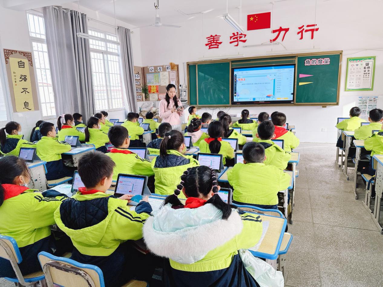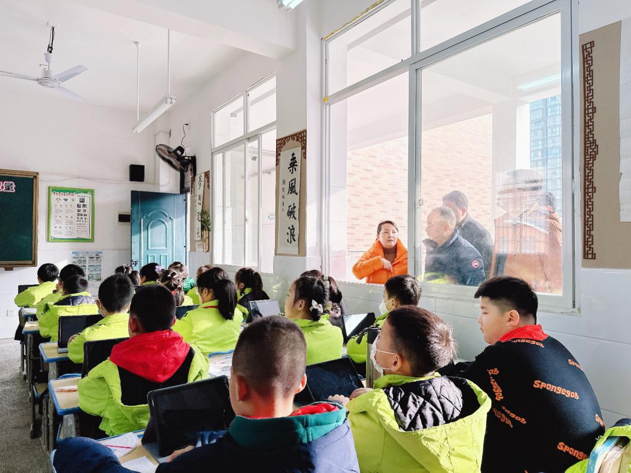 调研组实地察看了智慧教育项目区校两级平台功能搭建及应用情况,详细了解了智慧课堂、智慧心育、智慧操场、AI创新教育、备授课系统等产品功能,旁听了一节应用智慧课堂系统的小学四年级数学课《角的度量》。