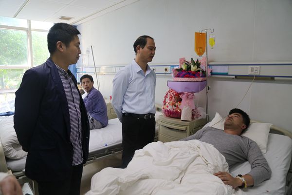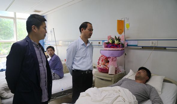 4月19日下午,区委书记周法清、副区长刘著章一行到南华大学附二医院,看望慰问在执法过程中,遭暴力抗法受伤的区控规拆违大队队员朱剑波,并送去了鲜花和慰问金。
