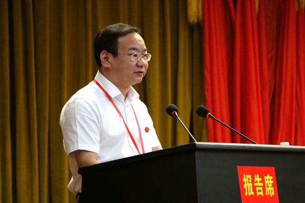 上午8时,袁谷平宣布大会开幕,全体起立,奏《国歌》。在热烈的掌声中,区委书记周玉梅向大会报告工作。她说,五年来,在市委市政府的坚强领导下,全区认真贯彻党的十八大精神,按照中央“四个全面”、“五大发展理念”、强力反腐、反对“四风”等工作部署,在工作中狠抓“四个突出”,即突出党要管党、从严治党,党建工作实现大提升;突出结构调整、创新驱动,综合实力实现大跨越;突出城乡一体、生态立区,城乡面貌实现大变样;突出以人为本、共享发展,人民生活实现大改善,圆满完成了区第三次党代会确定的各项任务,成为全市唯一的“湖南省全面建成小康社会达标县市区”。