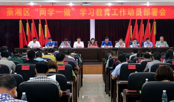 要把握重点内容,扎实抓好“两学一做”学习教育的各项任务。坚持以学为先,打牢“学”这个基础;坚持知行合一,抓住“做”这个关键;在全区党员中开展一系列具有蒸湘特色的活动:进行一次公开承诺,撰写一篇心得体会组织一次学习交流,举办一场“两学一做”书画展,开展一次“两学一做”巡回宣讲,举办一场迎“七一”流动党员文化体育活动,查办一批“雁过拔毛”式腐败问题;坚持问题导向,把握“改”这个重点;坚持精准施策,明确“准”这个要求;坚持抓长抓细,明确“常”这个特点。