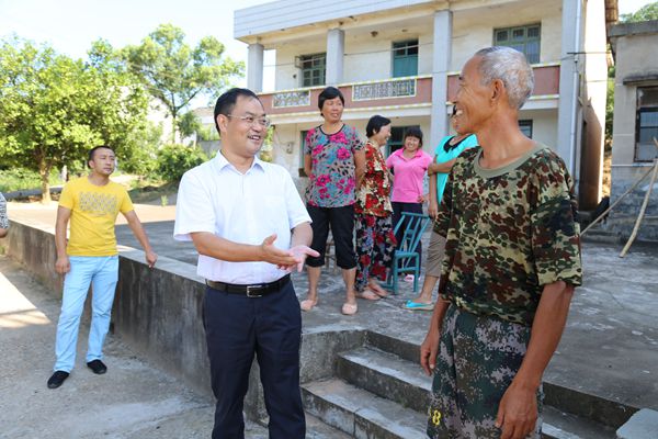 区委副书记、区长林喜洋(左二)与村民亲切交谈(陆意 摄)