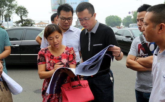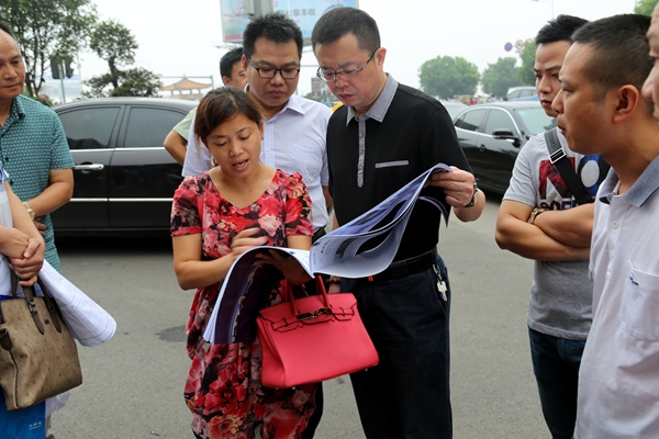 王华一行沿着蒸湘路一路前行,边看边议,就沿街人行道板铺装材料简单粗放,局部地段破损严重;广告牌、招牌、防盗网、外挂式空调机组等杂乱无序安放在建筑的外墙之上;果皮箱、垃圾桶、景观灯等市政设施缺乏;施工围墙多为砖混结构,简陋不美观等问题现场办公,提出整改意见。