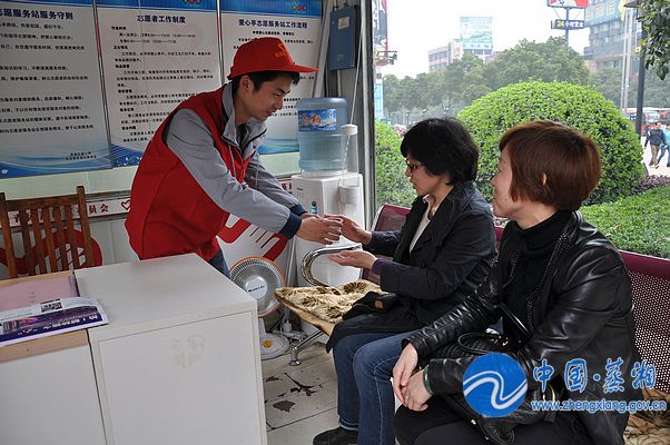 每年在春运或寒暑假等客运高峰期,中心汽车站的爱心岗亭格外引人注目,岗亭里一群戴着“小红帽”的爱心志愿者成为旅客的得力帮手:提行李、信息咨询、免费饮水……每一样都贴心为旅客设想。平时,突逢下雨的人们可以到爱心岗亭借雨伞,初到衡阳的人能够在爱心岗亭得到信息帮助,劳累或口渴的环卫工人也能够到爱心岗亭里歇息、喝水。