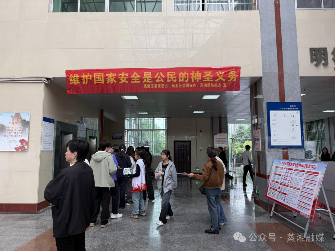 2026年4月15日,正值第十一个全民国家安全教育日。蒸湘区委国安办联合区委宣传部、区委政法委、区委保密办、区委网信办、区数据局、区公安分局等二十余家单位走进南华大学,在校内开展了一场以“统筹发展和安全 护航‘十五五’新征程”为主题的国家安全法治宣传活动,将国家安全知识精准送到师生与市民身边,进一步筑牢基层国家安全人民防线。