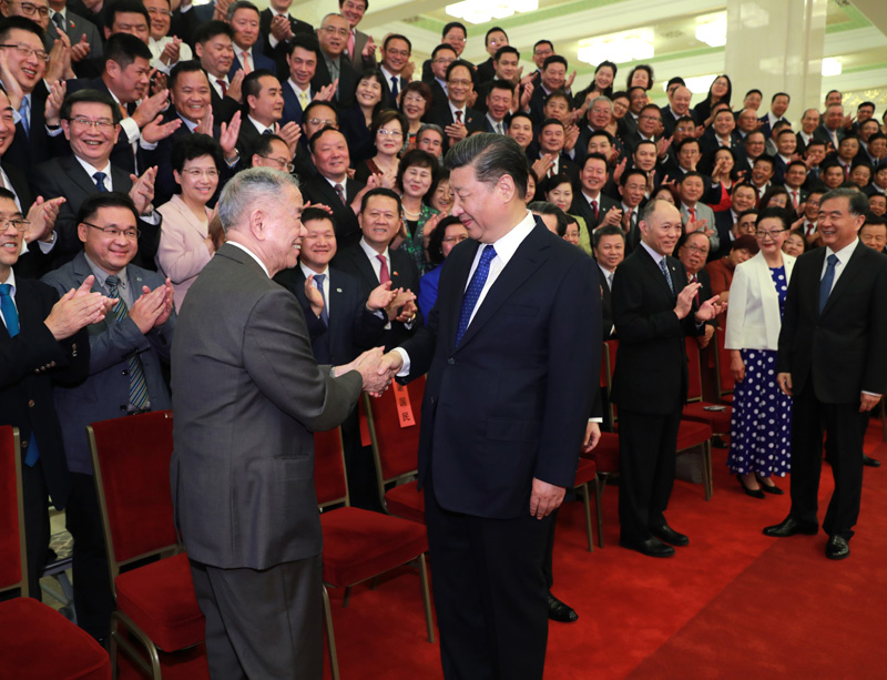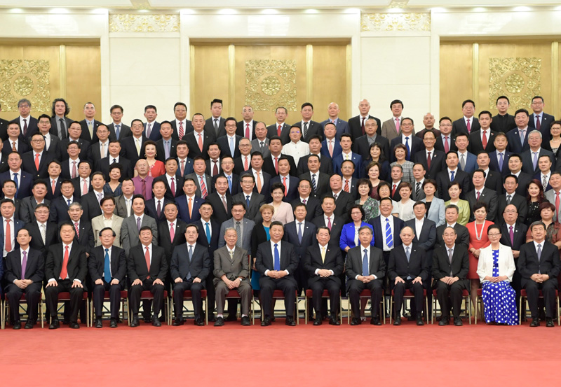5月28日,党和国家领导人习近平、汪洋等在北京人民大会堂会见第九届世界华侨华人社团联谊大会和中华海外联谊会五届一次理事大会全体代表。新华社记者 李学仁 摄