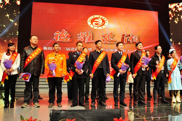 据了解,此次道德模范评选活动由中共衡阳市委宣传部、衡阳市精神文明建设指导委员会办公室、衡阳市警备区政治部、衡阳市总工会、共青团衡阳市委、衡阳市妇女联合会联合举办。第三届道德模范评选按照“助人为乐”、“见义勇为”、“诚实守信”、“敬业奉献”、“孝老爱亲”五个标准,经推荐、考察、公示、投票和综合评定等程序,评选表彰了10名道德模范和10名道德模范提名奖,以及评选表彰10名“身边雷锋·衡阳好人”和10名“身边雷锋·衡阳好人”提名奖。